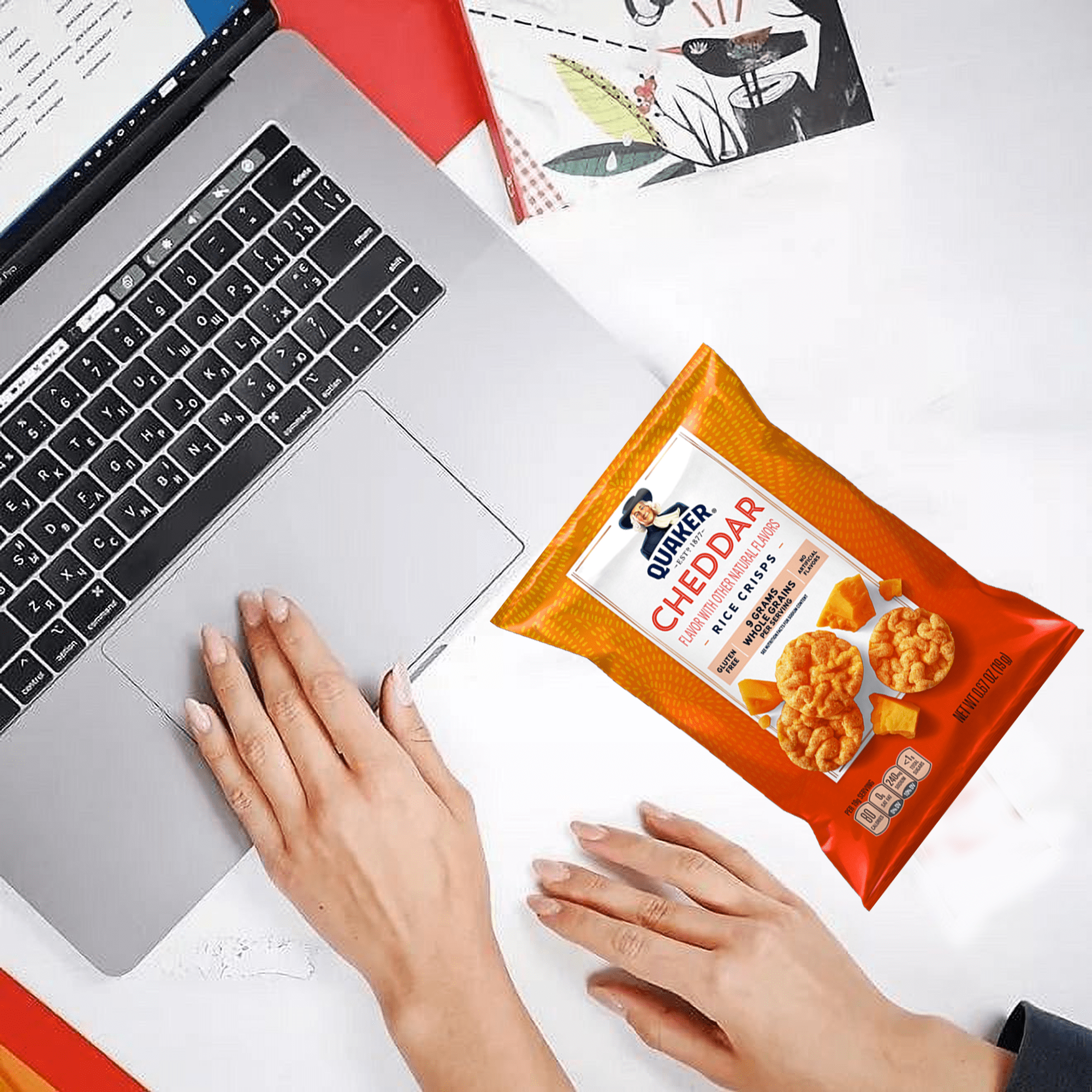 Satisfy your snack cravings with Quaker Rice Crisps with Cheddar Flavour! These light, crispy, and deliciously crunchy rice crisps are packed with the bold and savory taste of real cheddar cheese. Made with whole grain brown rice and popped to perfection, they offer a delightful crunch in every bite.